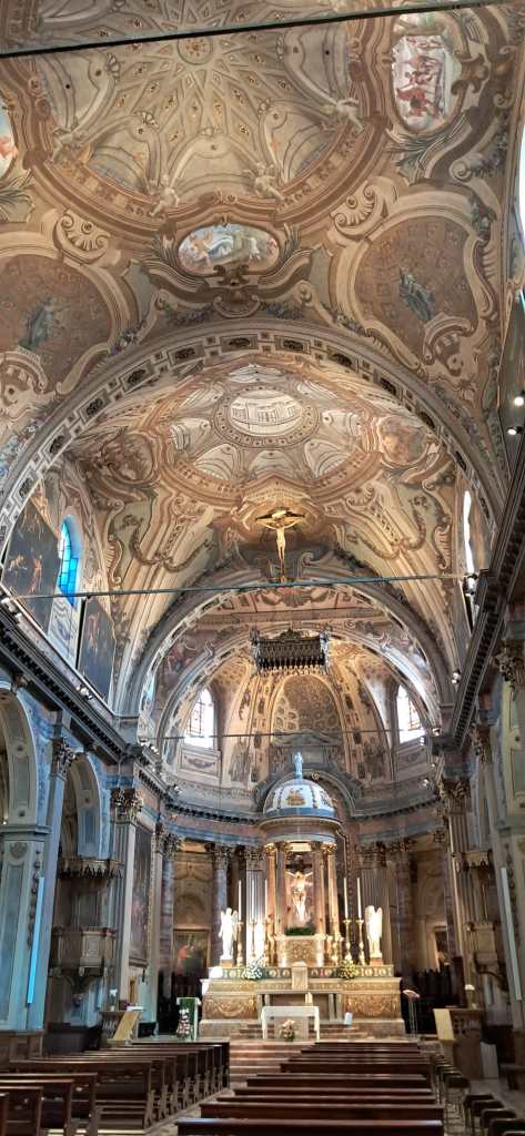 Al tempo del pranzo è seguita una nuova visita, questa volta della Basilica di Treviglio guidati dalla professoressa Lauria, che ha accompagnato il gruppo alla scoperta dell’antico e del nuovo di questo luogo di culto, tanto caro alla popolazione e carico di opere d’arte. In modo particolare si possono ammirare le affrescature di tipo scenografico, opera dei fratelli Galliari che particolarmente hanno lavorato in questa Basilica, le vetrate di Longaretti insieme ad opere sei e settecentesche.